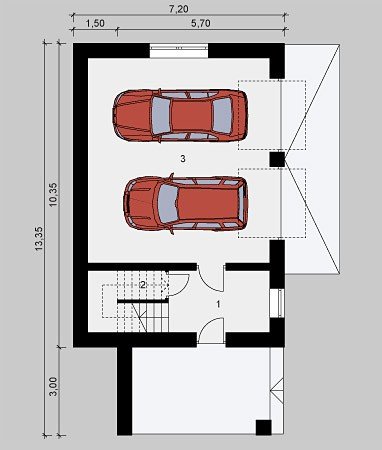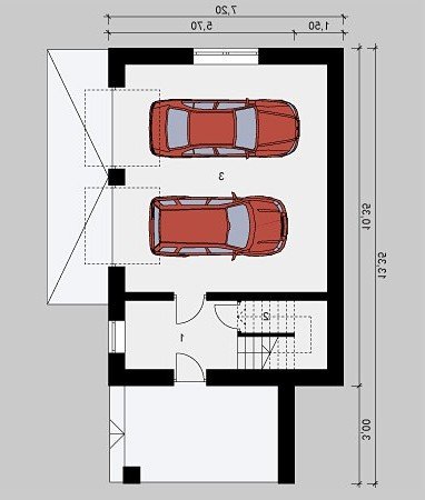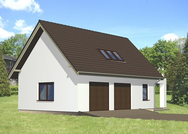 Wolnostojący garaż z poddaszem użytkowym z miejscem parkingowym dwa samochody.