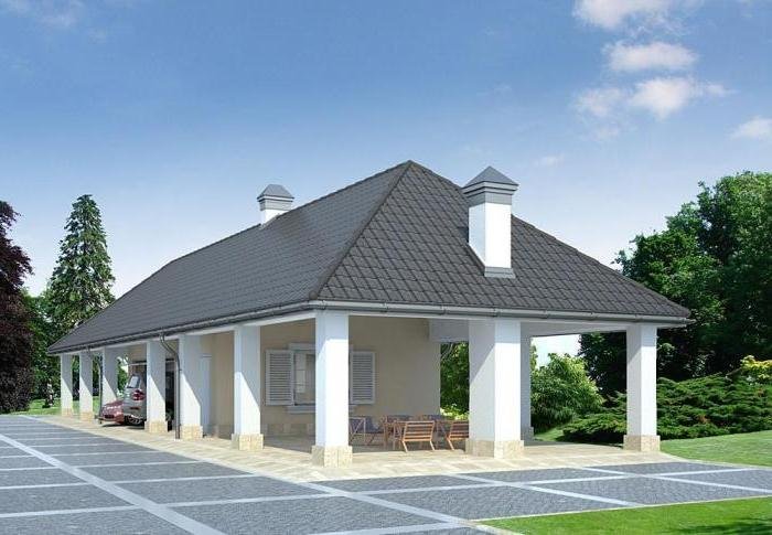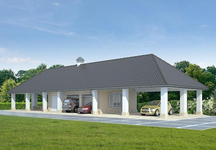 Parterowy, jednostanowiskowy garaż, z poddaszem użytkowym, bez podpiwniczenia.