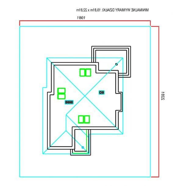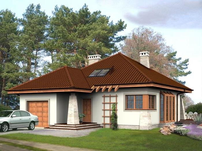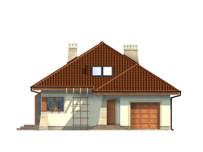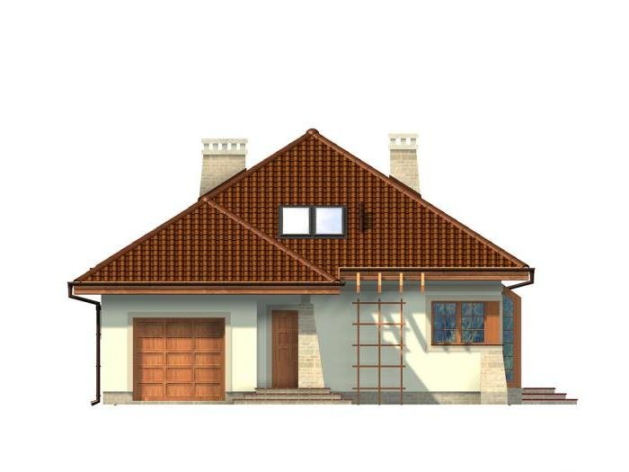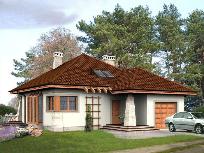 * dom jednorodzinny, niepodpiwniczony, z użytkowym poddaszem , garaż zlokalizowany w obrębie bryły budynku