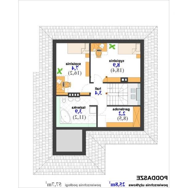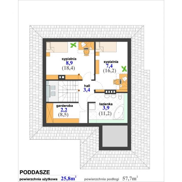 * w przypadku mniejszej rodziny istnieje możliwość dowolnej aranżacji poddasza, np. na pracownię lub pomieszczenie rekreacyjne