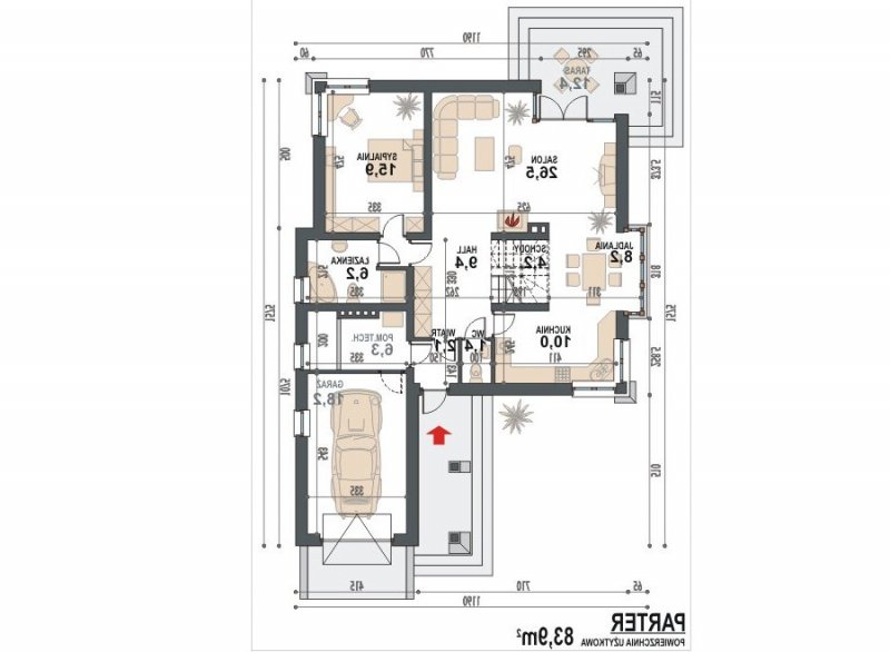 * istnieje możliwość wykonania wejścia do garażu poprzez wiatrołap i kotłownię