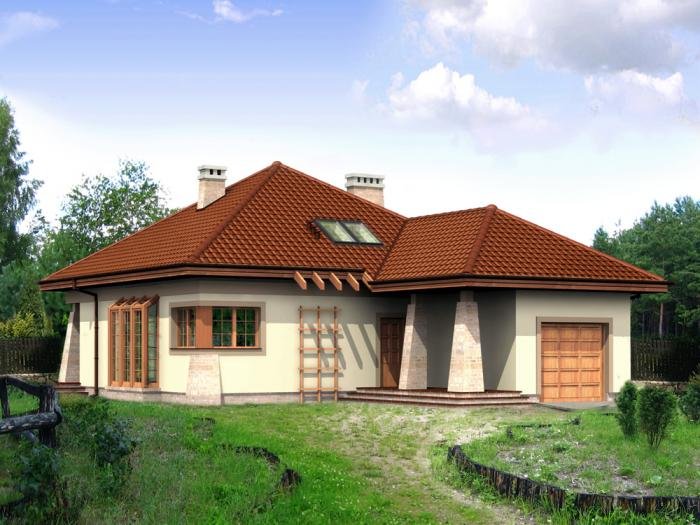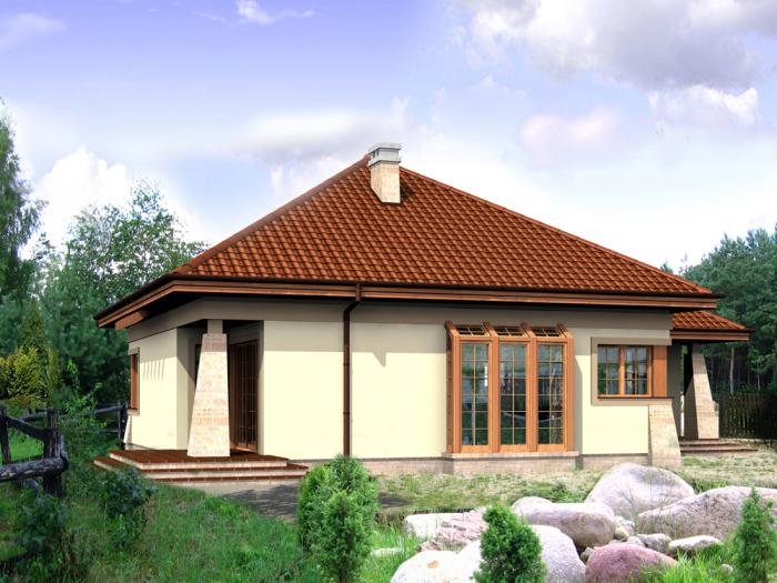 dach czterospadowy z pokryciem z dachówki ceramicznej, cementowej lub blaszanej