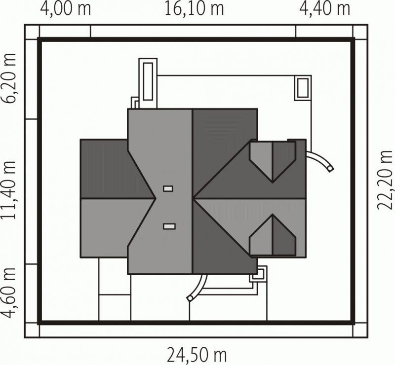 - Min. wymiary działki 24.50x22.20 m