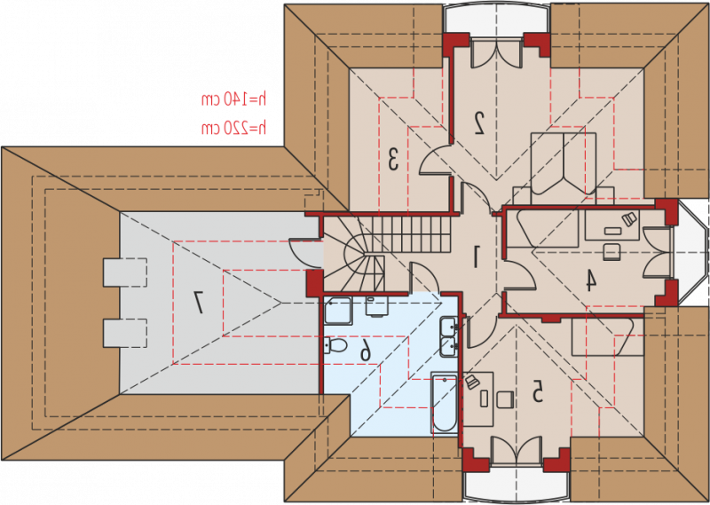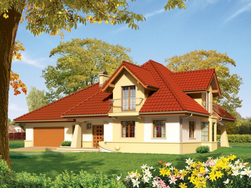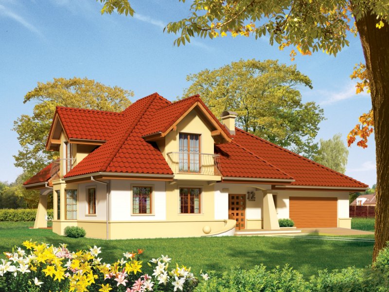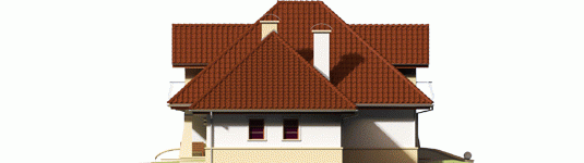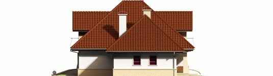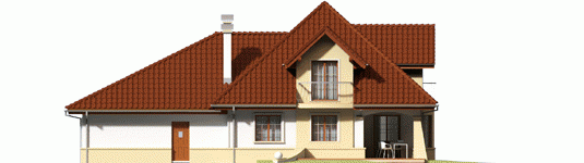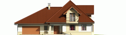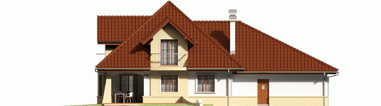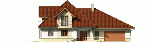 Dom parterowy z poddaszem użytkowym, niepodpiwniczony, z garażem dwustanowiskowym przeznaczony dla 4-5 osobowej rodziny. Strefa dzienna zaprojektowana została na parterze, nocna natomiast na poddaszu. Na strefę dzienną składa się kuchnia ze spiżarnią, salon z jadalnią oraz gabinet, który może zostać wykorzystany jako pokój dla gości. Na parterze znalazły się jeszcze łazienka i pomieszczenie gospodarcze. Poddasze mieści sypialnię z garderobą, dwa pokoje, łazienkę oraz strych, który w razie potrzeby można zaadaptować na dodatkowy pokój. Istnieje wersja projektu z garażem jednostanowiskowym.
