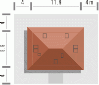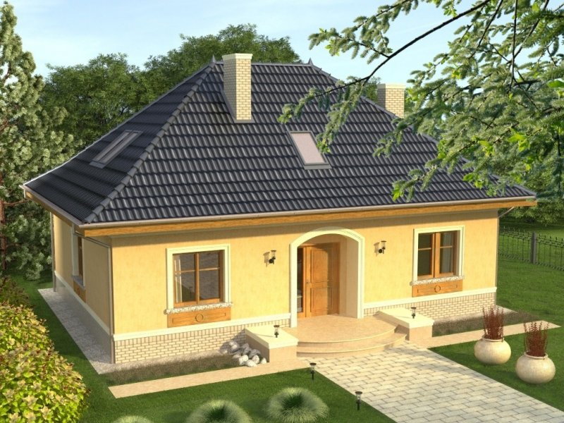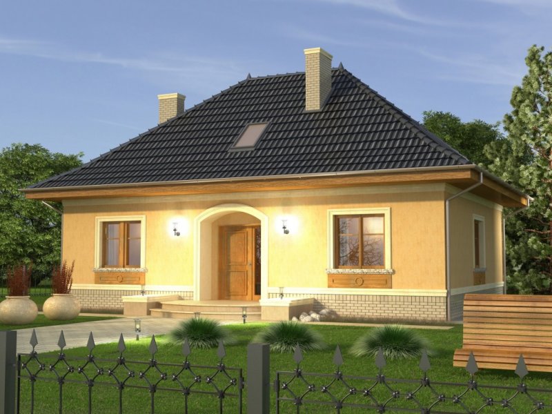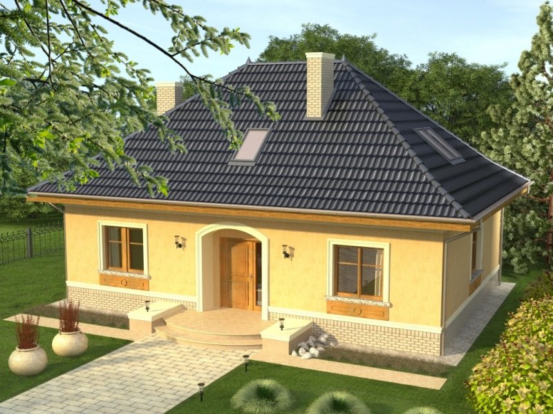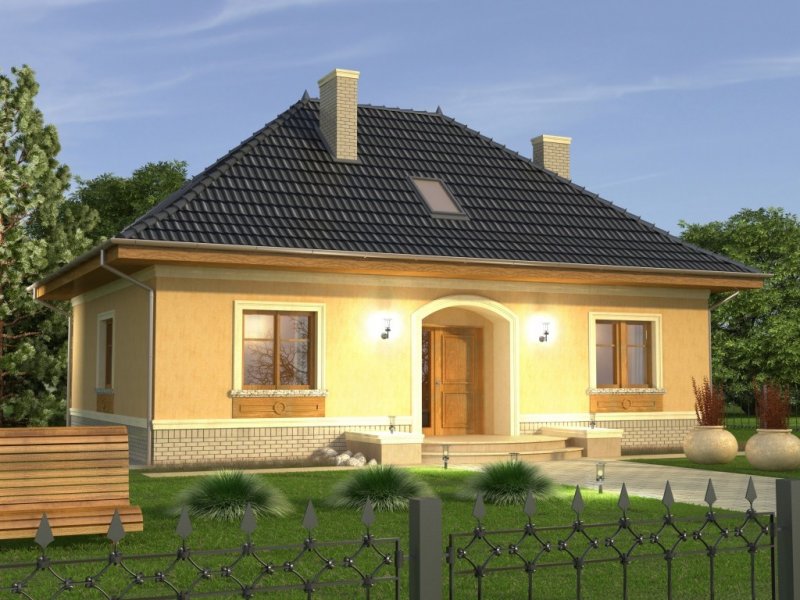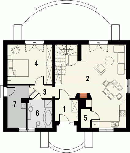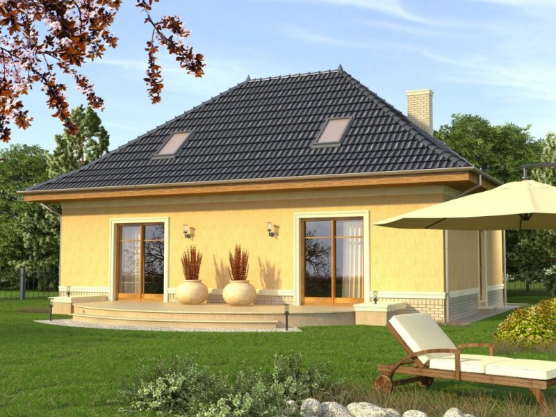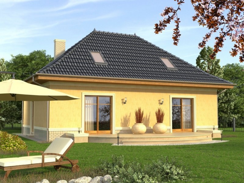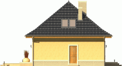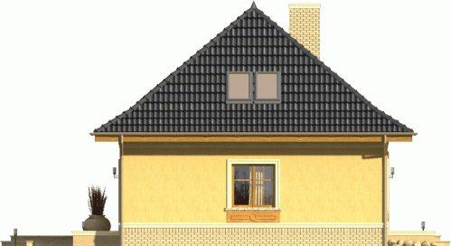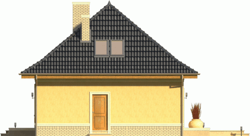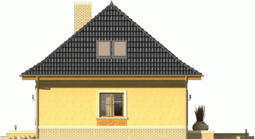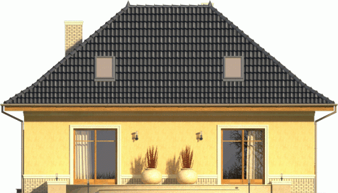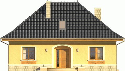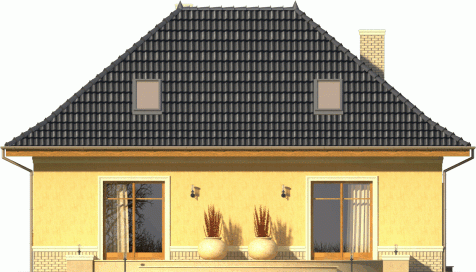 Propozycja klasycznego domu z wejściem w podcieniu na osi budynku podkreślającym symetrię bryły. Od strony tylnej posiada efektowne, podwójne drzwi balkonowe łączące wnętrze domu z dużym tarasem i ogrodem.