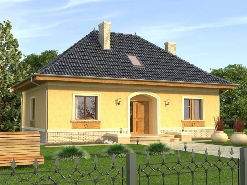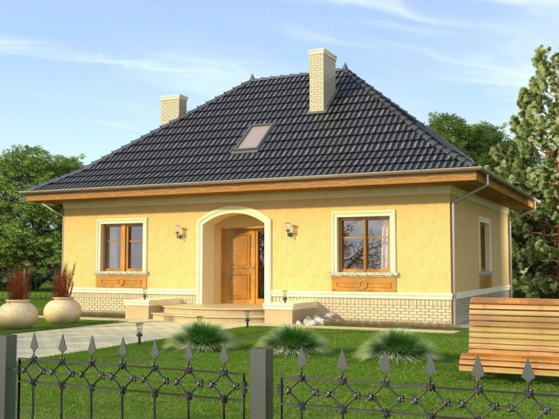 Ściany budynku zaprojektowano z betonu komórkowego z dociepleniem lub w innej technologii w ramach adaptacji. Strop gęstożebrowy, więźba drewniana, pokrycie dachówką ceramiczną lub cementową. Inne pokrycia w ramach adaptacji. Elewacje tynkowane, cokoły okładane płytką klinkierową lub tynkowane.