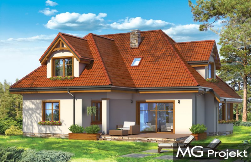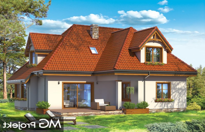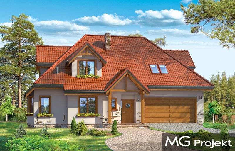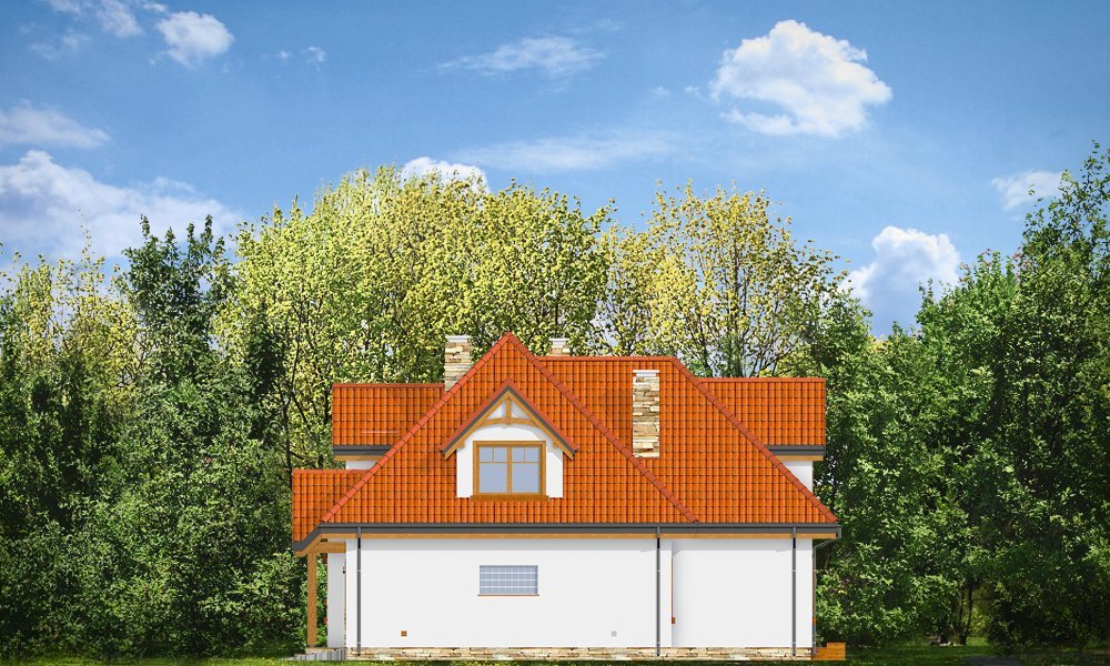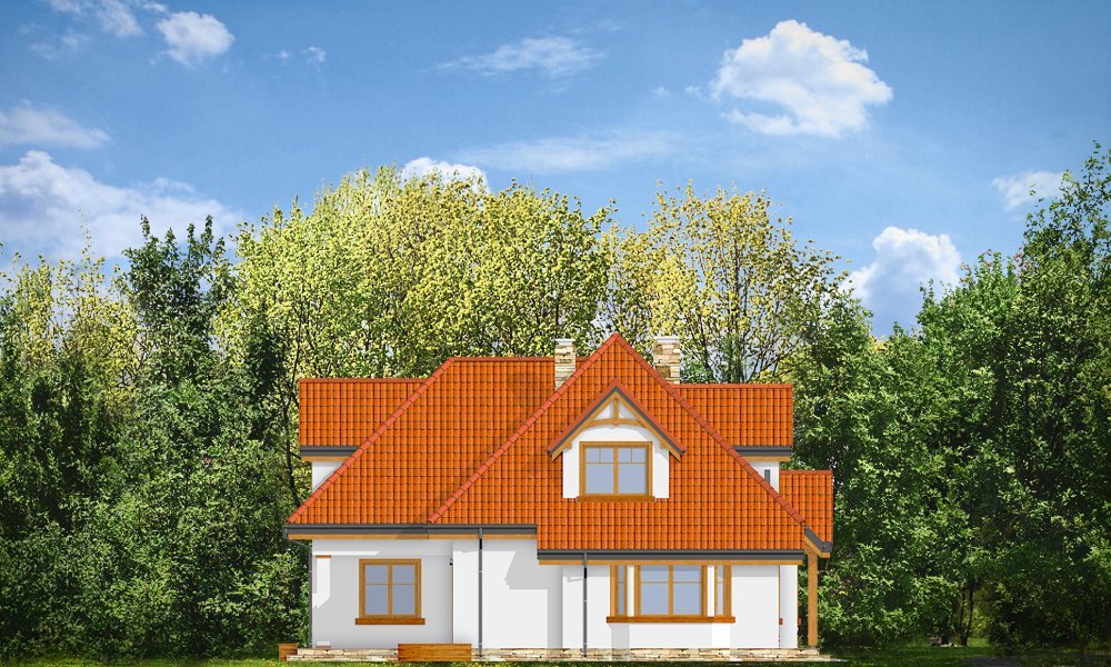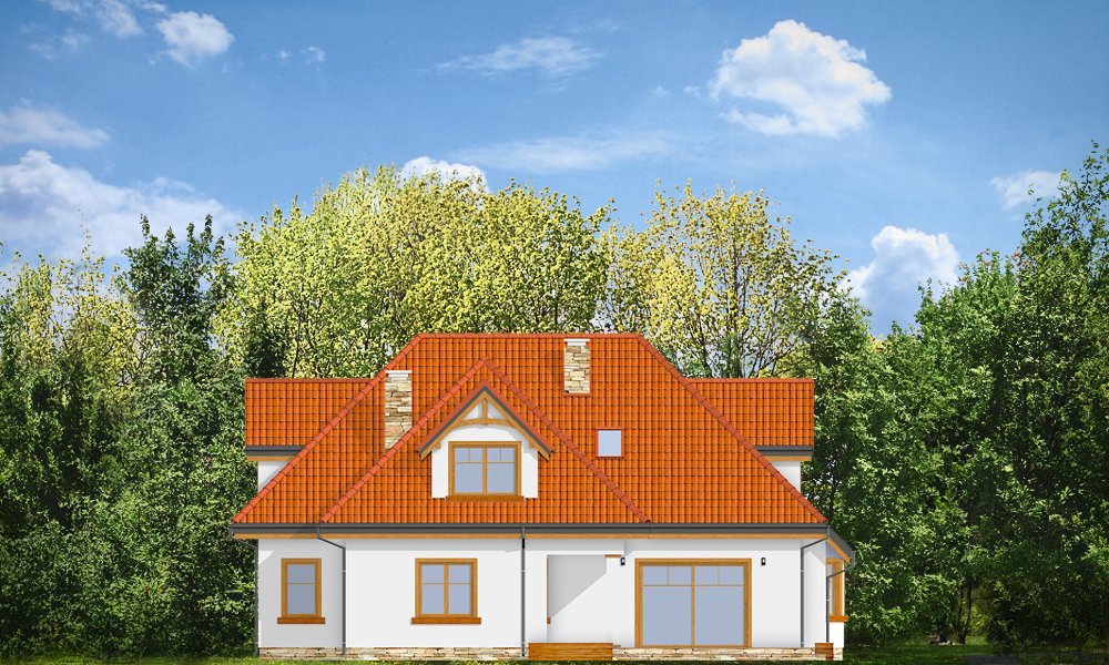 Jesion 2 to wariantowa wersja projektu Jesion. Pracownia przychyliła się do sugestii Klientów, którym oryginalny projekt podobał się, ale szukali mniejszego, oszczędniejszego domu. Projekt jest o prawie jedną trzecią mniejszy od wersji podstawowej, nie ustępując swemu większemu protoplaście, ani w urodzie, ani w wygodzie wnętrza. Jesion 2 jest budynkiem parterowym, z poddaszem użytkowym, przewidziano go dla cztero-pięcioosobowej rodziny. Plan zbudowany na układzie litery "T" przekryty jest wielospadowym dachem. Tak samo jak w pierwowzorze w wewnętrznym narożniku budynku znajduje się zaciszny taras, oraz podcień, gdzie suchą stopą można korzystać z tarasu mając dach nad głową. Architektonicznie dom jest klasycznym polskim "dachowcem", nie aspiruje do wizerunku nowoczesnych, ekstrawaganckich form. Budynek jest podmiejski, przedmieściowy - ma połączyć mieszkańców z otaczającą przyrodą i innymi podobnymi domkami. Wnętrze domu na parterze to głównie salon połączony z holem i jadalnią, oraz półotwartą kuchnią. Z salonu widać centralnie umiejscowione schody, oraz ścianę kominkową, z salonu również wychodzi się na taras. Z holu przechodzimy do dodatkowego pokoju - gabinetu lub dodatkowej sypialni. Z drugiej strony wejścia zmieszczono garaż i kotłownię. Na poddaszu miejsce znalazły trzy duże sypialnie z garderobami i szafami wbudowanymi i duża łazienka - pokój kąpielowy. Pracownia posiada też wersję projektu w odbiciu lustrzanym.