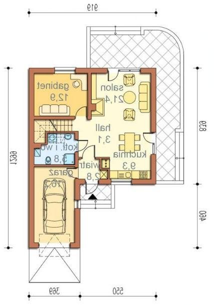 Dom może być wybudowany na wąskiej działce- nie jest szeroki, a ponieważ posiada ścianę szczytową bez okien może być zbliżony na 3m od granicy działki lub zrealizowany jako bliźniak.