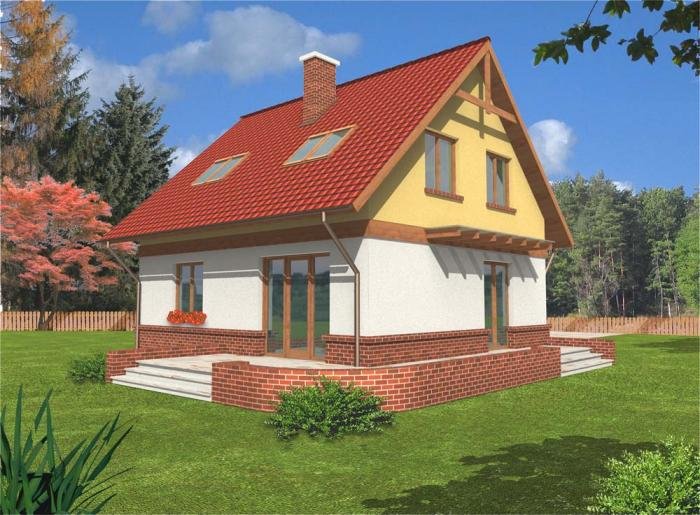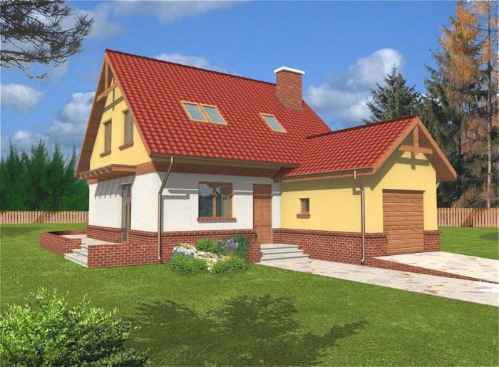 Jest to nieduży niepodpiwniczony dom z użytkowym poddaszem i wbudowanym garażem, przeznaczony dla 4-5 osobowej rodziny. Dom ma zwartą bryłę - na planie prostokąta z wysuniętym garażem. Małe skomplikowanie bryły i przekrycie dwuspadowym dachem sprawia, że jest tani i łatwy w realizacji.