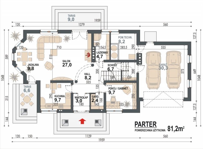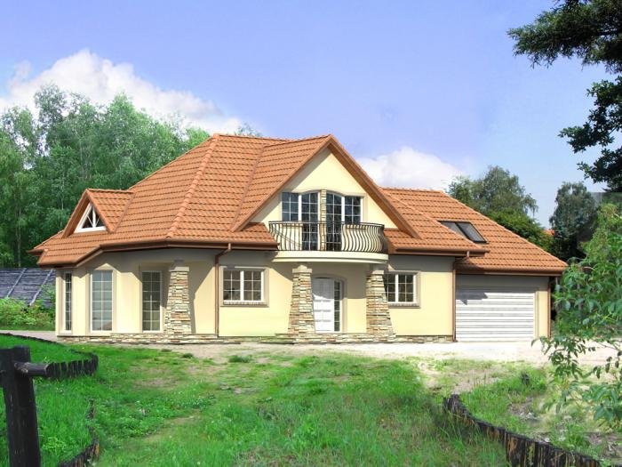 * Przestronny jednorodzinny dom parterowy, z użytkowym poddaszem i garażem dwustanowiskowym (istnieje wersja jednostanowiskowa), niepodpiwniczony