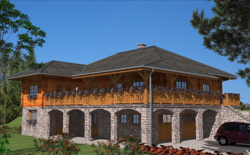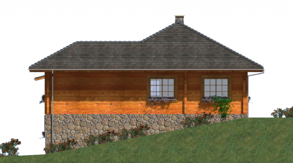 Ściany zewnętrzne: z bali drewnianych gr. 12, 16, 20, 24 cm. ocieplone od wewnątrz wełną mineralną lub 52 cm bez ocieplenia