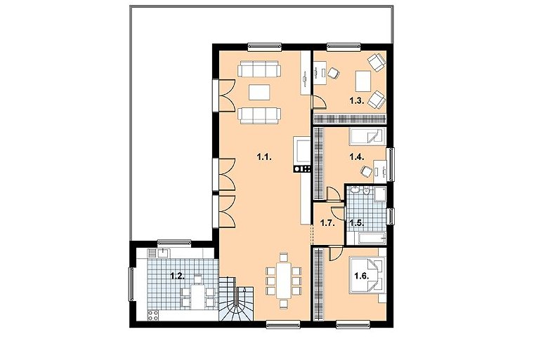 Budynek jednorodzinny, parterowy, podpiwniczony, 5 pokoi, kuchnia z jadalnią
