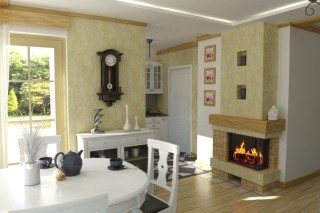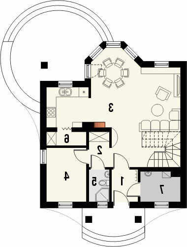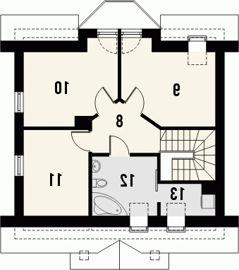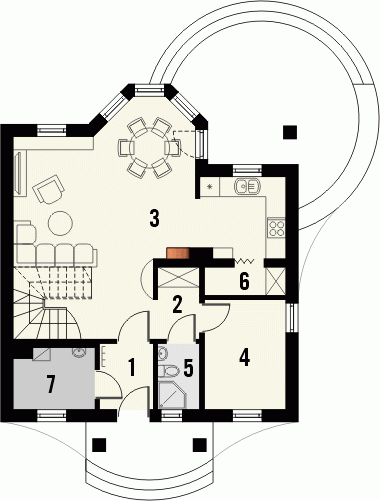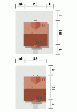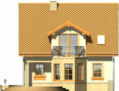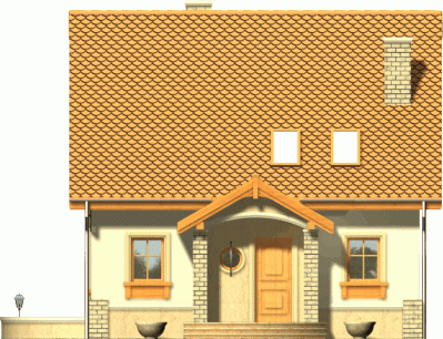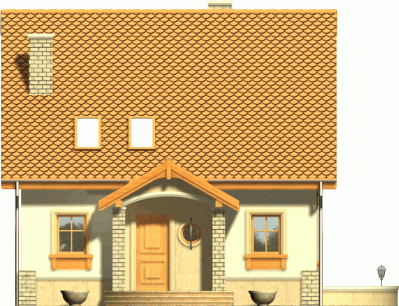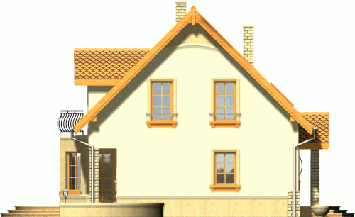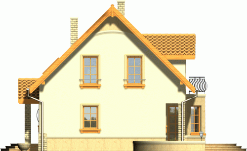 Budynek niepodpiwniczony piętrowy. Na parterze zaprojektowano pokój dzienny z atrakcyjnym wykuszem jadalni, kuchnię ze spiżarką, dodatkowy pokój, łazienkę i pomieszczenie gospodarcze. Na poddaszu usytuowano trzy pokoje i łazienkę z niewielką pralnią. Dokumentacja dostępna również w odbiciu lustrzanym.