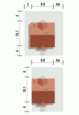 Ściany budynku zaprojektowano z betonu komórkowego z warstwą ocieplenia lub w innej technologii w ramach adaptacji. Strop gęstożebrowy, więźba drewniana, pokrycie dachówką ceramiczną lub cementową. Inne pokrycia w ramach adaptacji. Elewacje tynkowane, cokoły i elementy fasad okładane płytką klinkierową lub tynkowane.