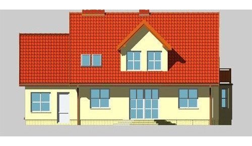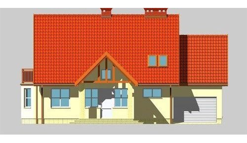 Dom jednorodzinny, parterowy, z poddaszem użytkowym i jednostanowiskowym garażem.