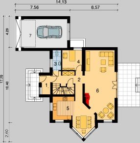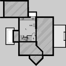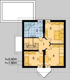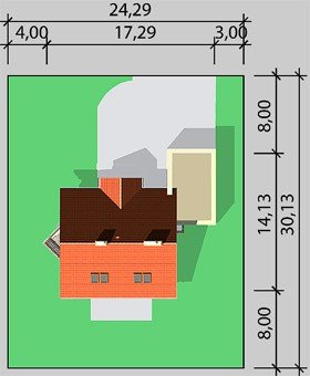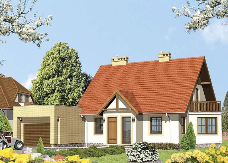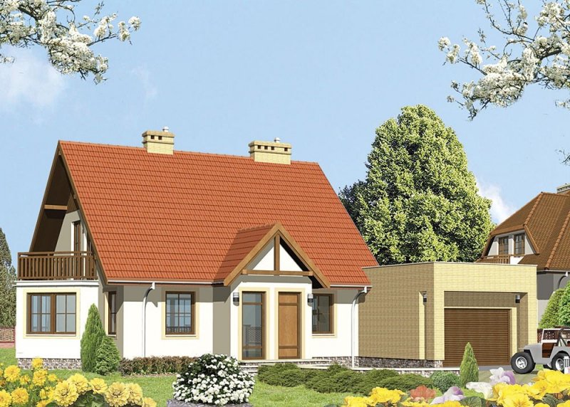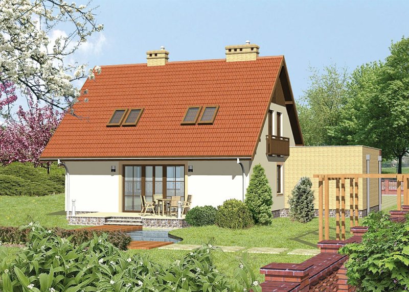 Dom jednorodzinny, parterowy, z poddaszem użytkowym i jednostanowiskowym garażem, częściowo podpiwniczony.