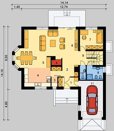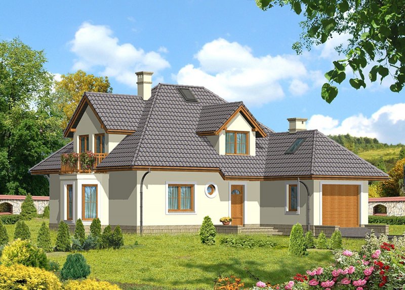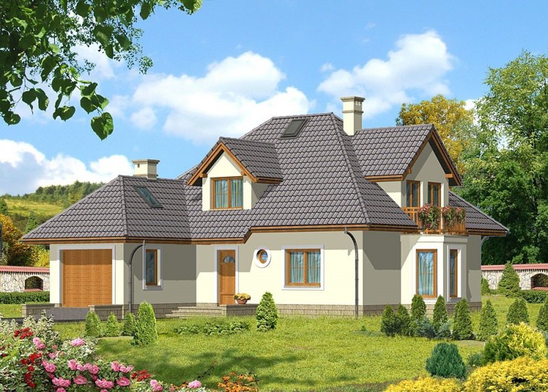 Dom jednorodzinny, podpiwniczony, z poddaszem użytkowym i jednostanowiskowym garażem.