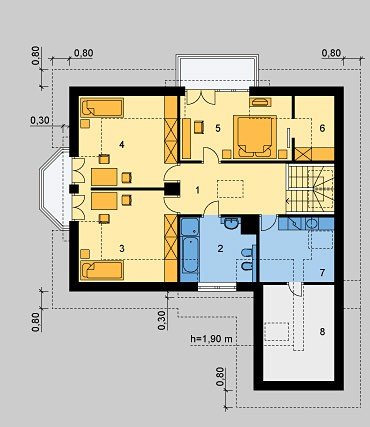 - Elewacje: wykończone tynkiem silikonowym, cokoły obłożone kamieniem naturalnym ciętym