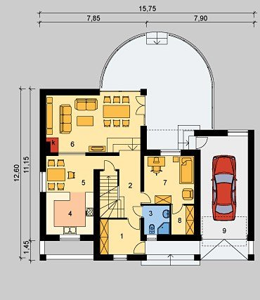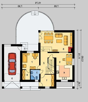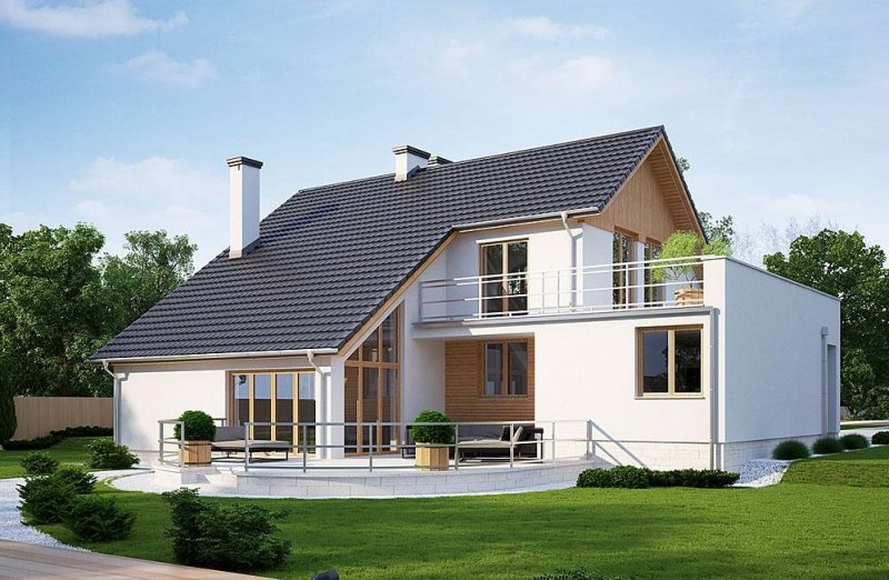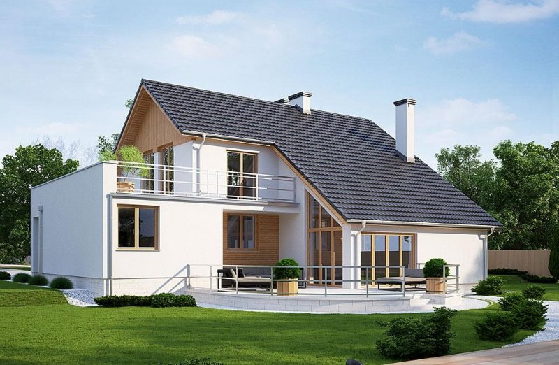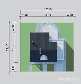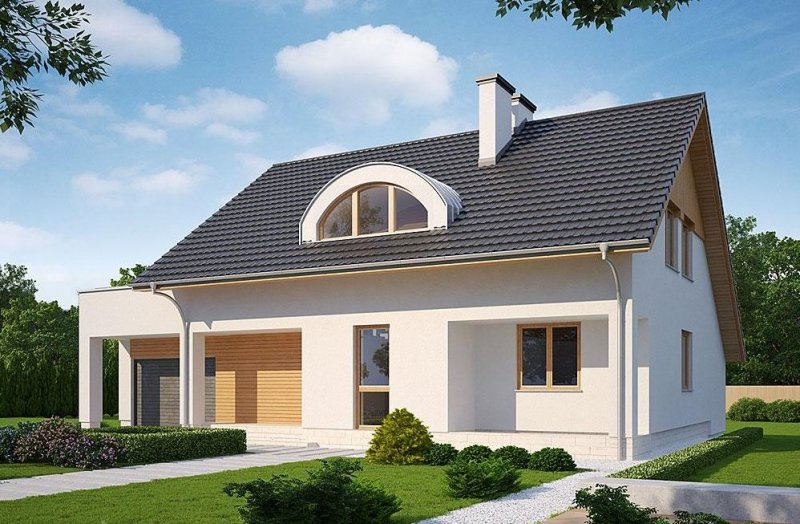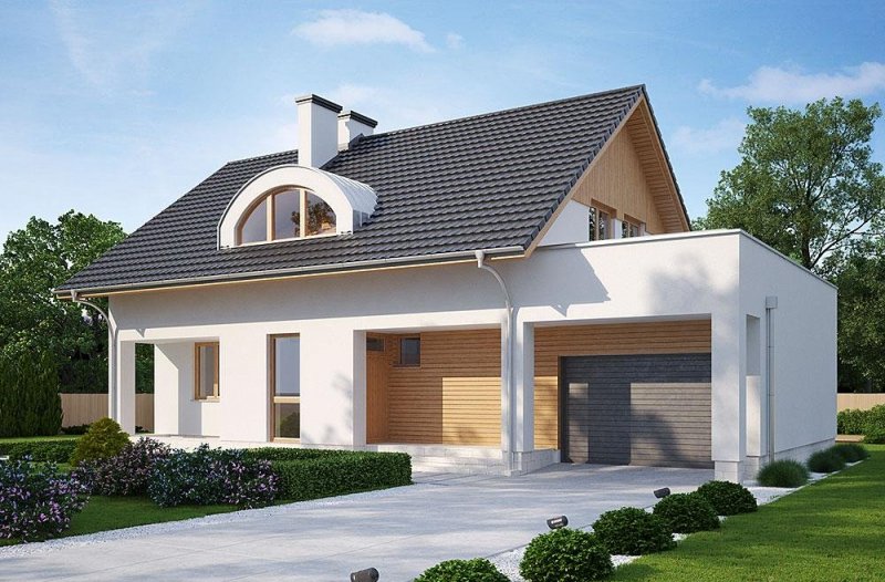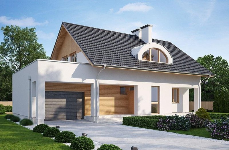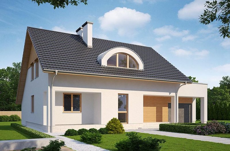 Dom jednorodzinny, parterowy, z poddaszem użytkowym i dwustanowiskowym garażem, częściowo podpiwniczony.