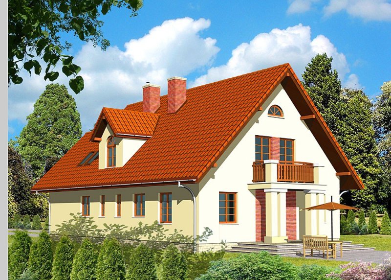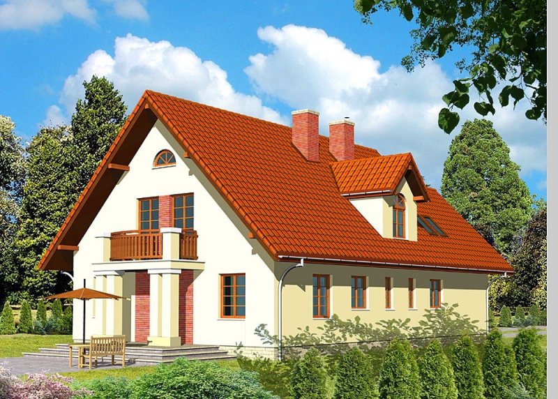 - Pokrycie dachu: dachówką Braas