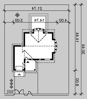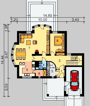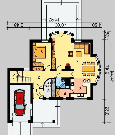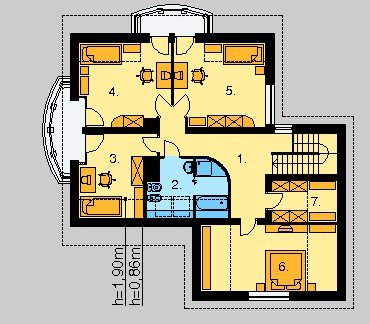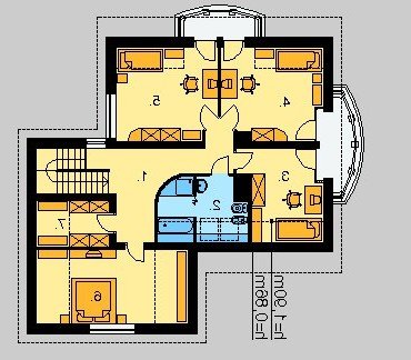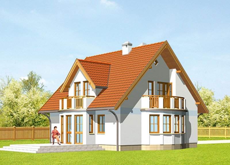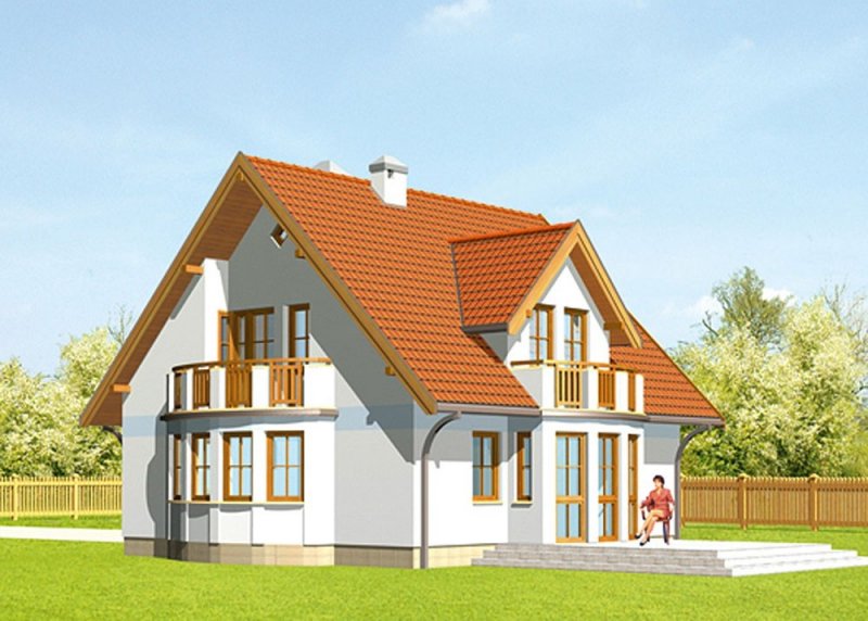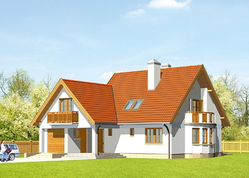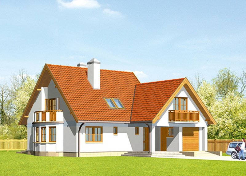Dom jednorodzinny, parterowy, z poddaszem użytkowym i jednostanowiskowym garażem.