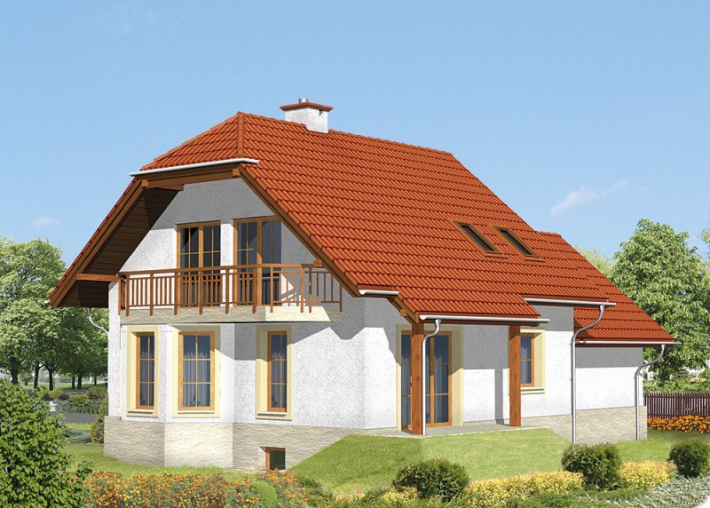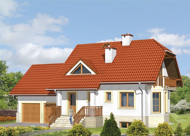 Dom jednorodzinny, parterowy, podpiwniczony z użytkowym poddaszem i dwustanowiskowym garażem.