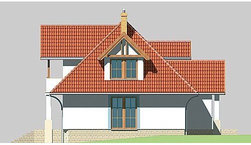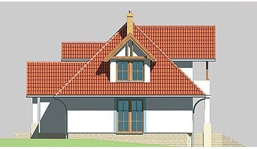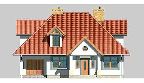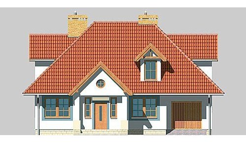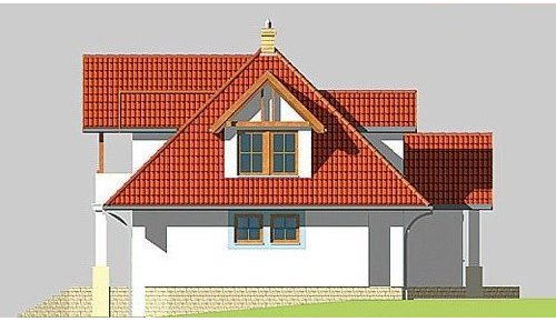 Dom jednorodzinny, parterowy z poddaszem użytkowym i jednostanowiskowym garażem.