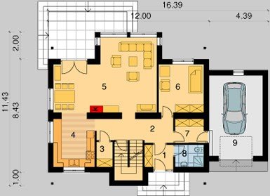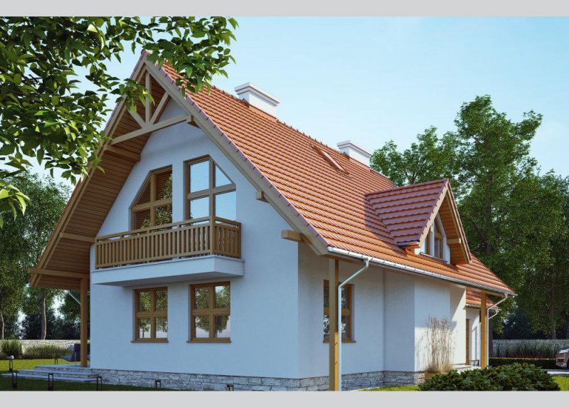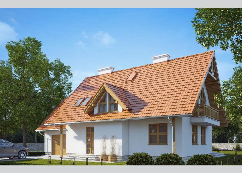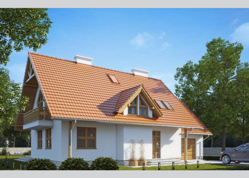 Dom jednorodzinny, parterowy, z poddaszem użytkowym, podpiwniczony, z jednostanowiskowym garażem.