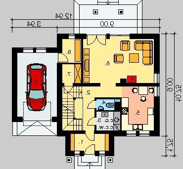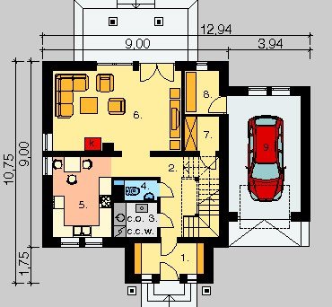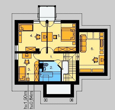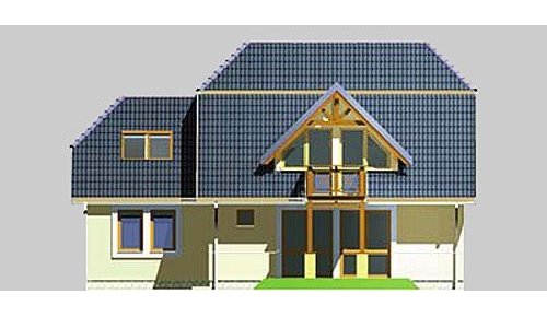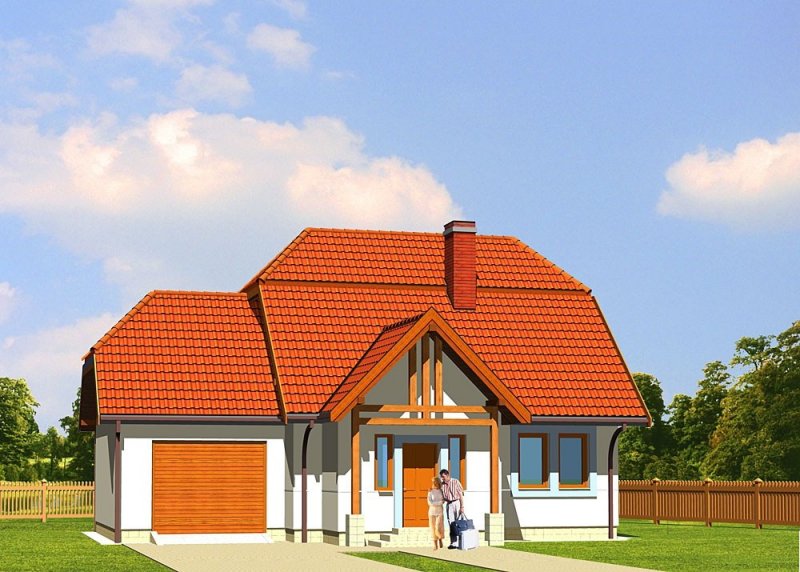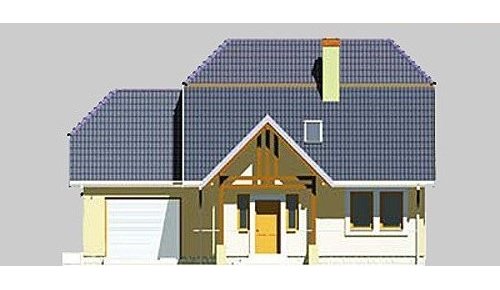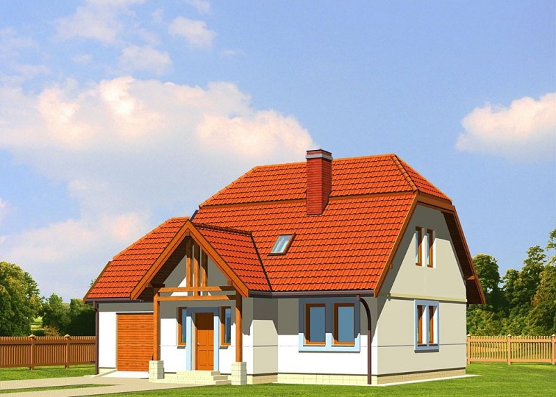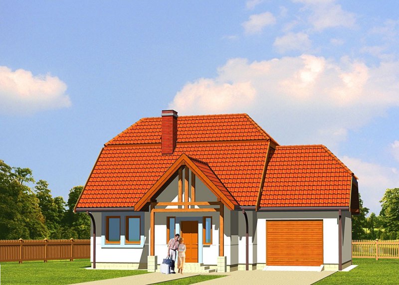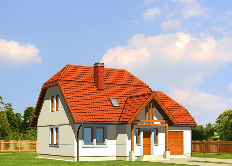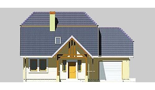Dom jednorodzinny, parterowy, z poddaszem użytkowym i jednostanowiskowym garażem.