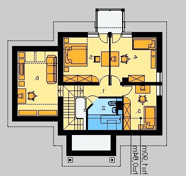 - Konstrukcja dachu: drewniana docieplona wełną mineralną gr. 17 cm