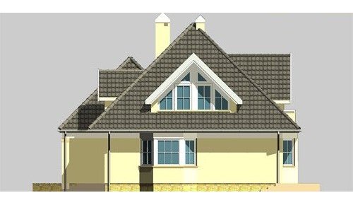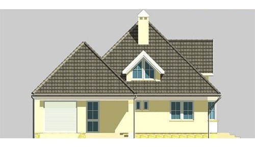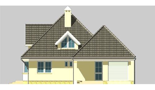 Dom jednorodzinny, parterowy, z poddaszem użytkowym, z jednostanowiskowym garażem.