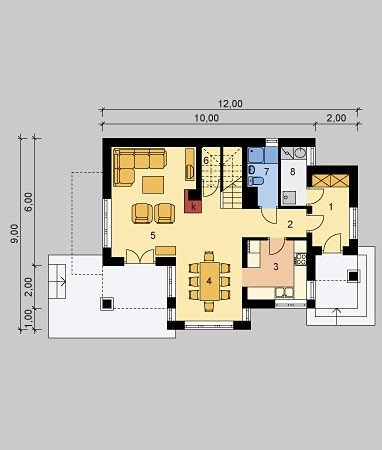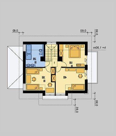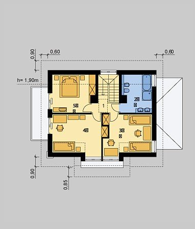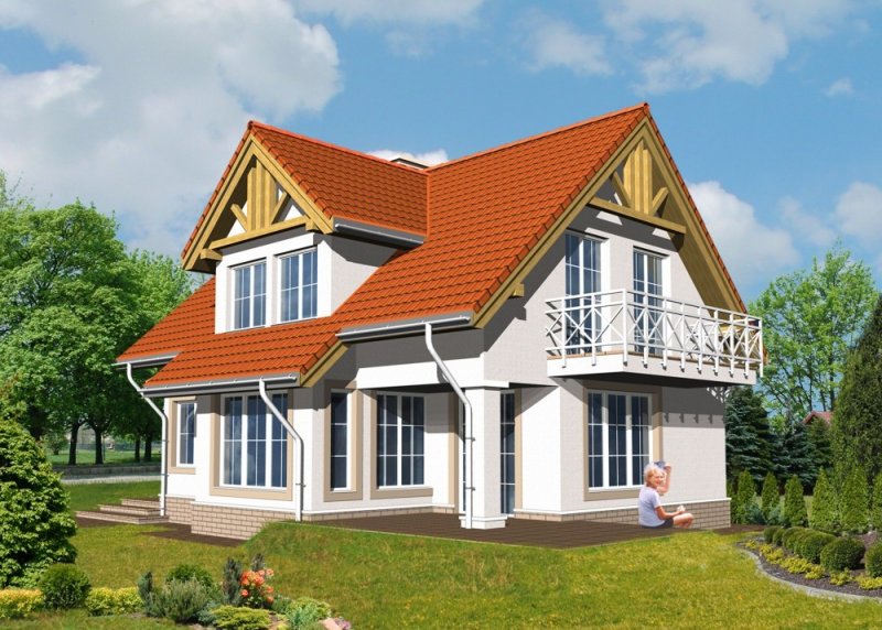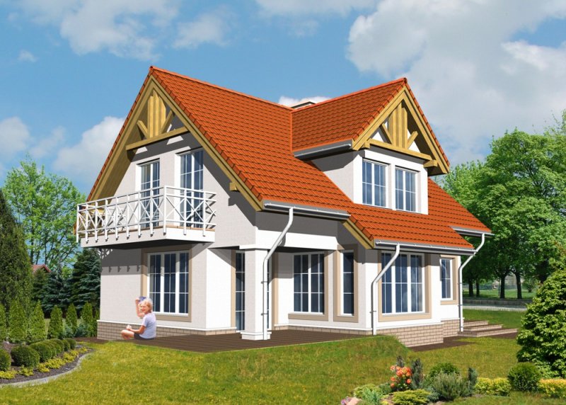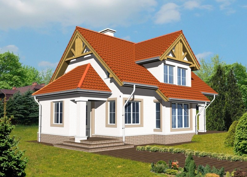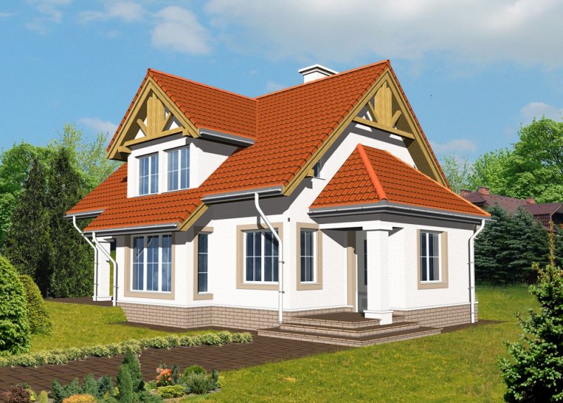 Dom jednorodzinny, niepodpiwniczony, z poddaszem użytkowym.