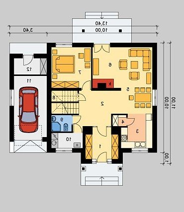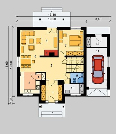 - Pokrycie dachu: dachówką ceramiczną