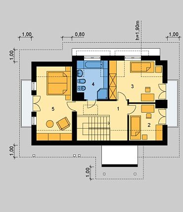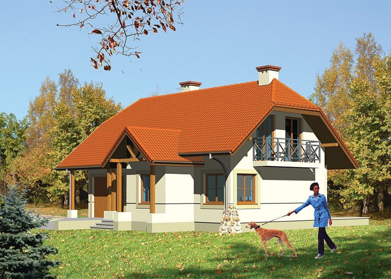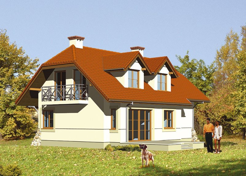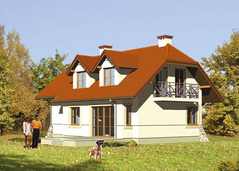 Dom jednorodzinny, parterowy, z poddaszem użytkowym, niepodpiwniczony, z jednostanowiskowym garażem.