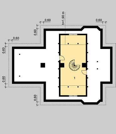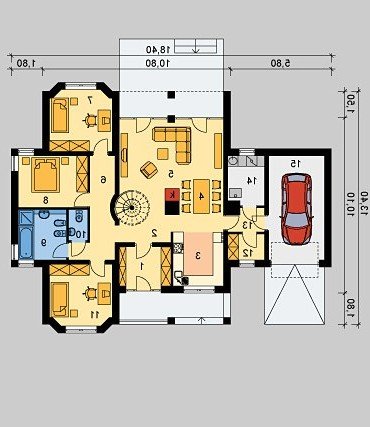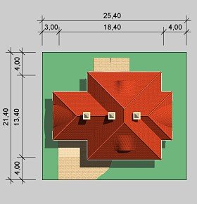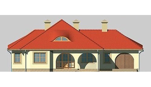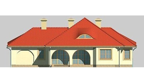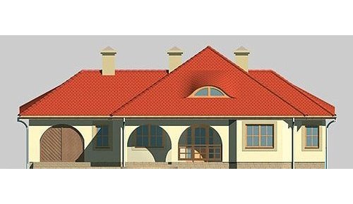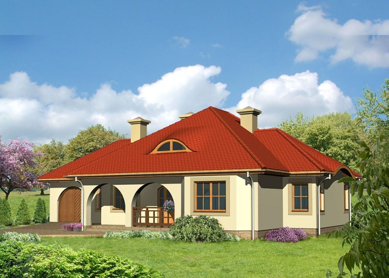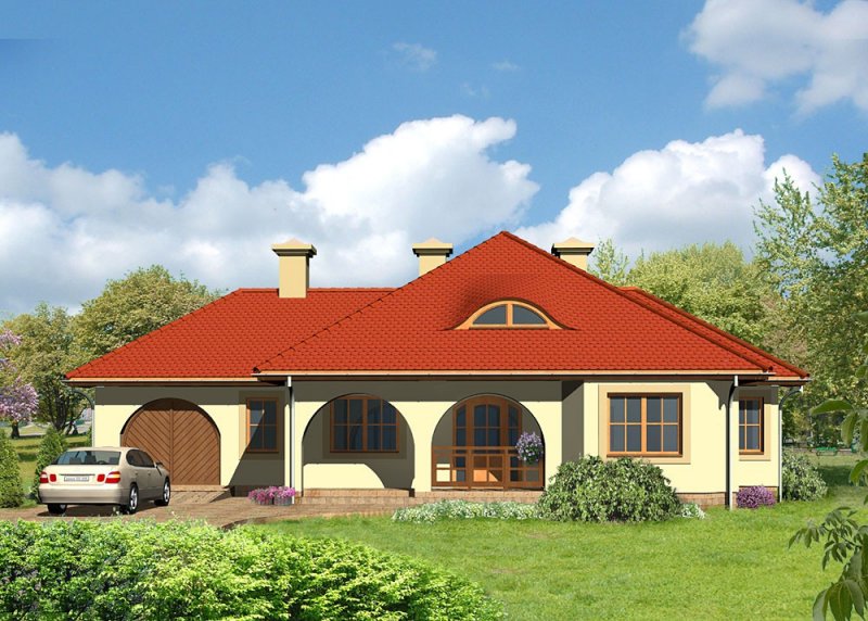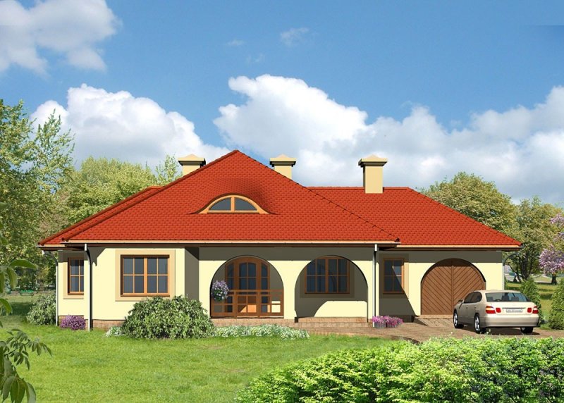 Dom jednorodzinny, parterowy, z poddaszem użytkowym i jednostanowiskowym garażem.