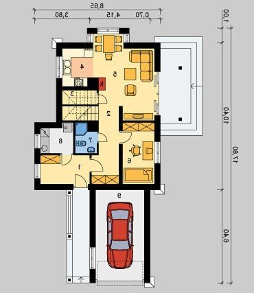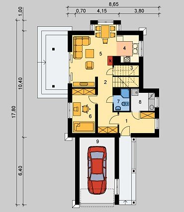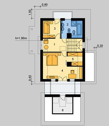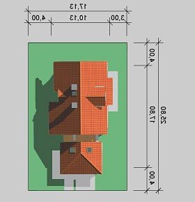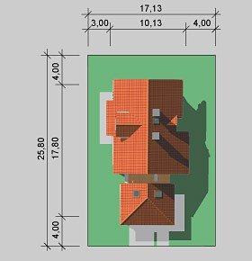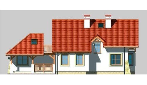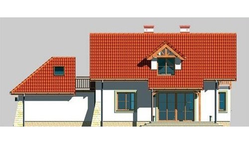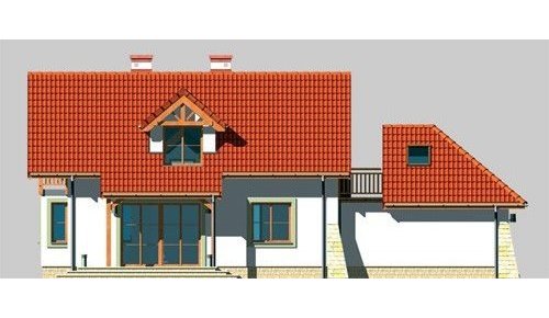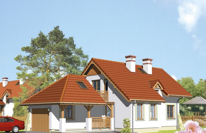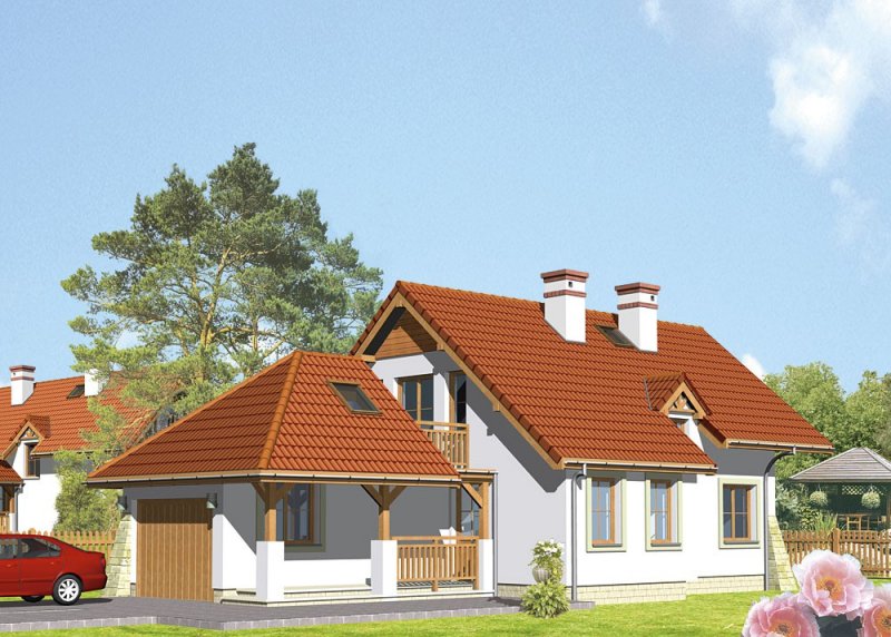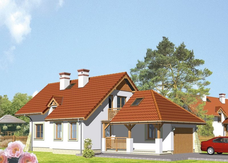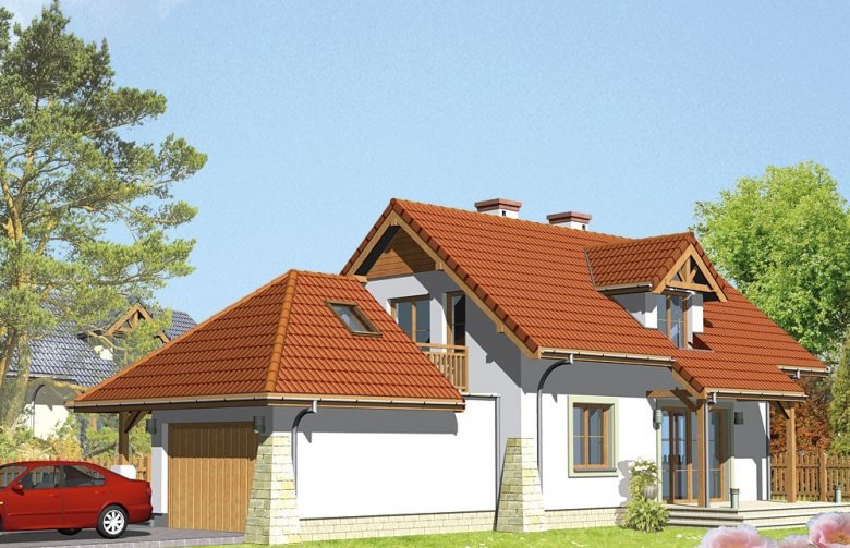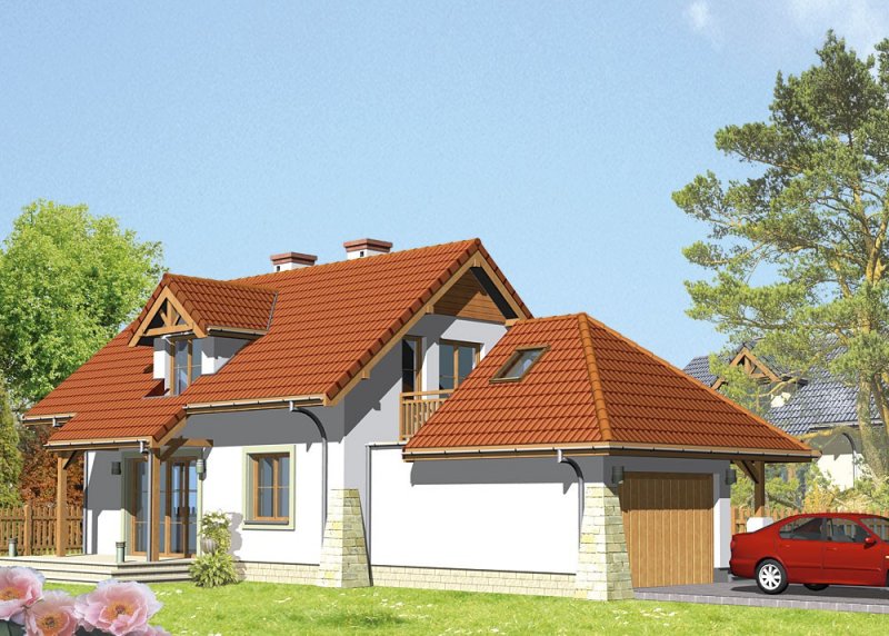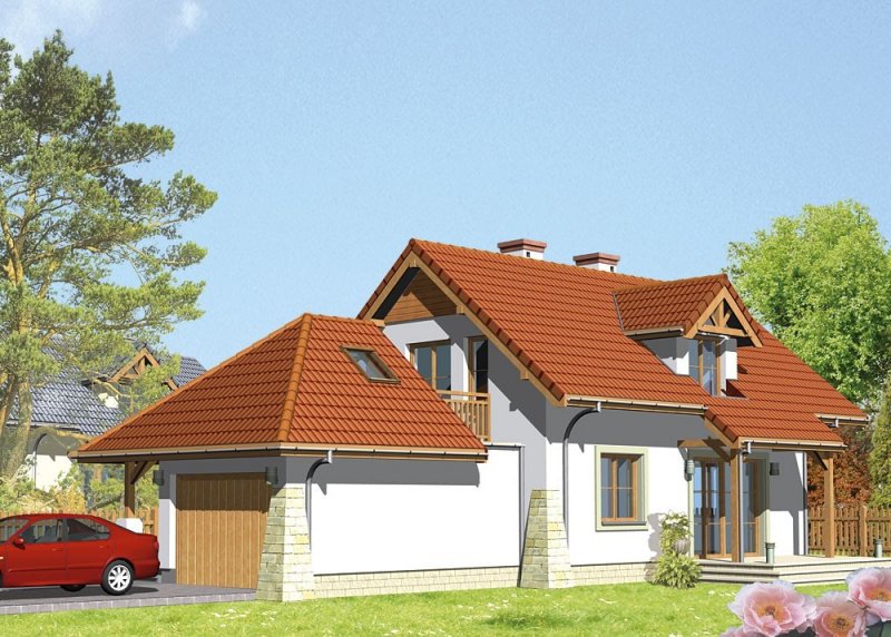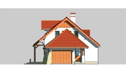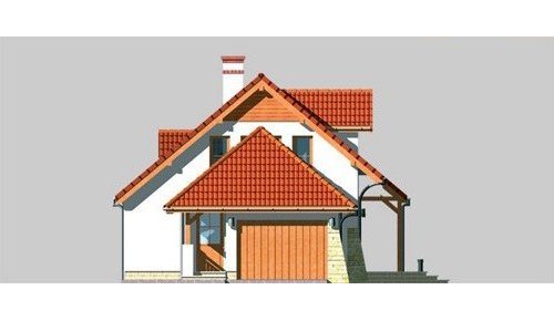 Dom jednorodzinny, parterowy, z poddaszem użytkowym i jednostanowiskowym garażem.