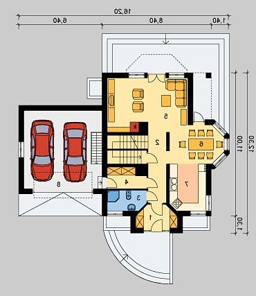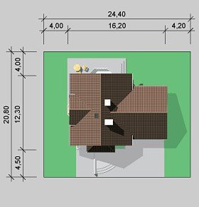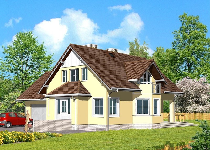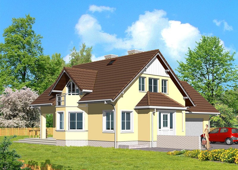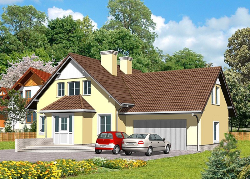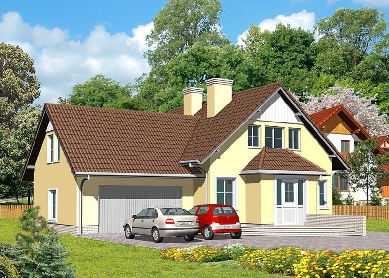 Dom jednorodzinny, parterowy, z poddaszem użytkowym, podpiwniczony, z dwustanowiskowym garażem.