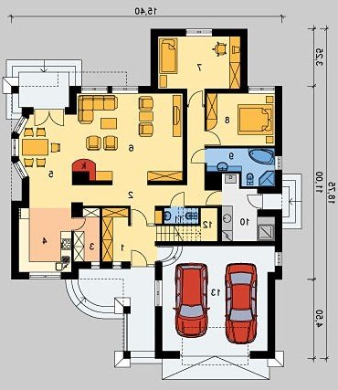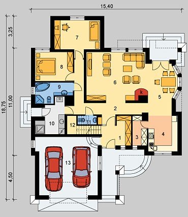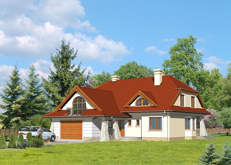 Dom dwupokoleniowy, parterowy, z poddaszem użytkowym i dwustanowiskowym garażem.