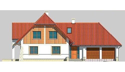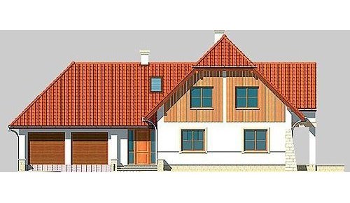 Dom jednorodzinny, parterowy, z poddaszem użytkowym i dwustanowiskowym garażem.