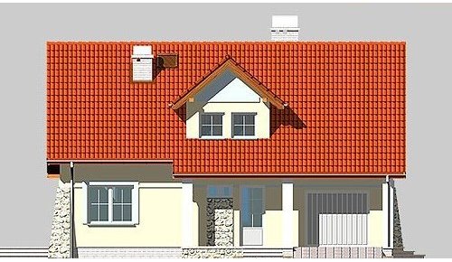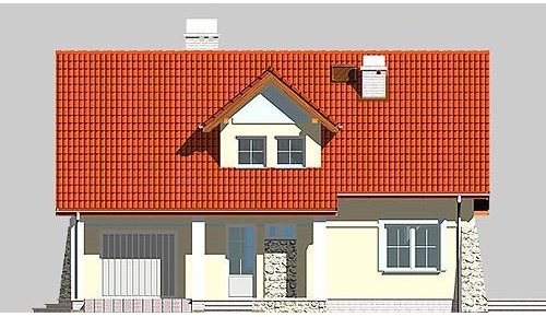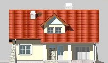 Dom jednorodzinny, parterowy, z poddaszem użytkowym i jednostanowiskowym garażem.