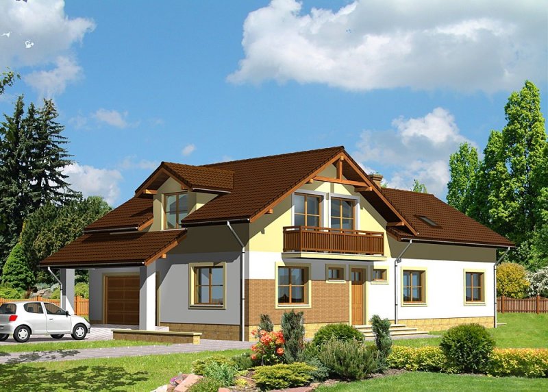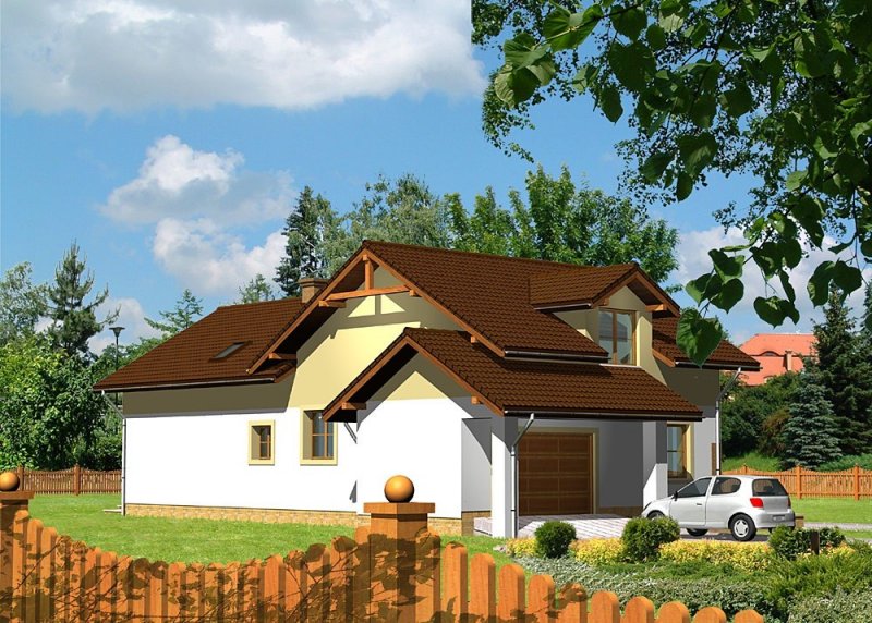Dom jednorodzinny, parterowy, z poddaszem użytkowym, podpiwniczony i jednostanowiskowym garażem.