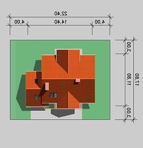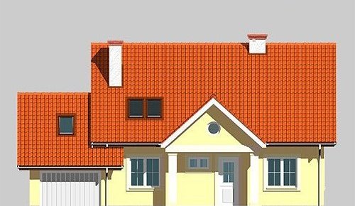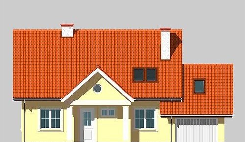Dom jednorodzinny, parterowy, z poddaszem użytkowym i dwustanowiskowym garażem.