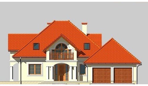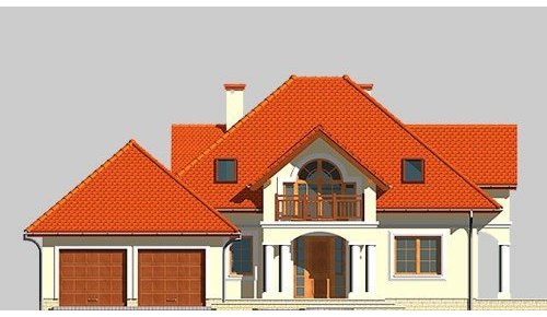 Dom jednorodziny, parterowy, z poddaszem użytkowym i dwustanowiskowym garażem.