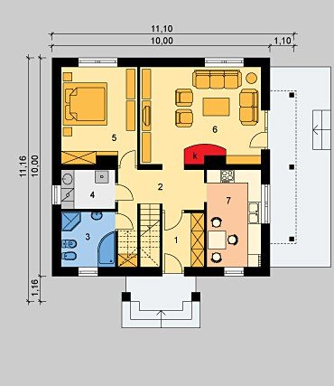 Dom jednorodzinny, parterowy z poddaszem użytkowym.