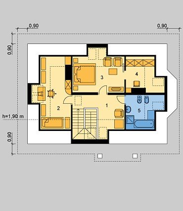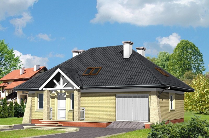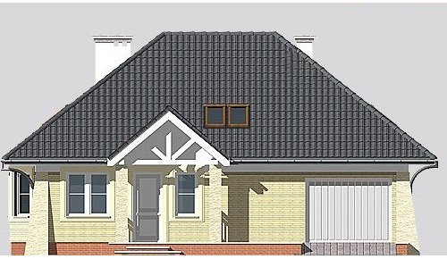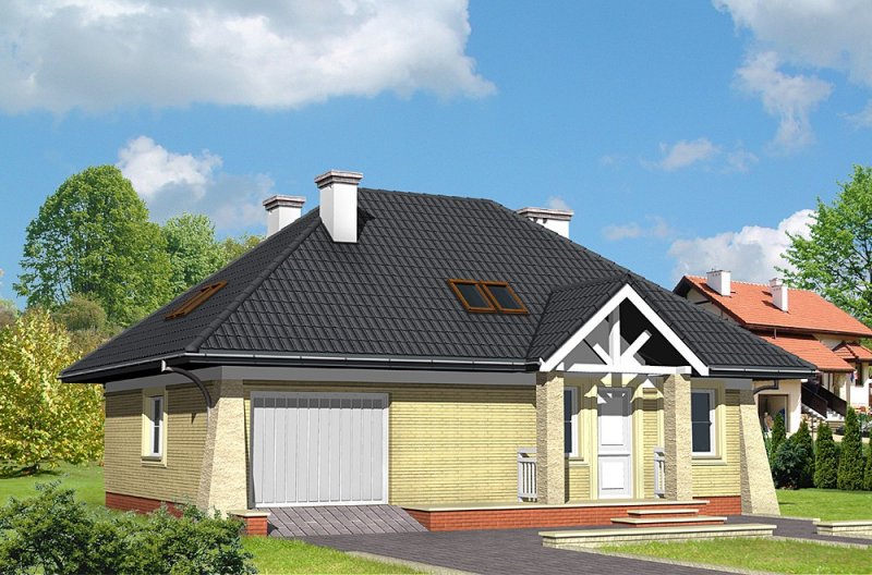 Dom jednorodzinny, parterowy, z poddaszem użytkowym i jednostanowiskowym garażem.