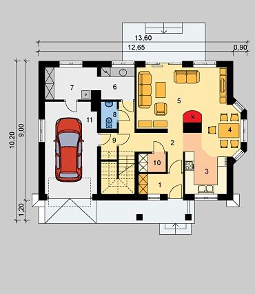 - Pokrycie dachu: dachówką ceramiczną