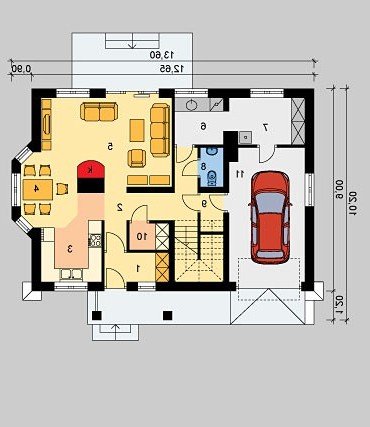 - Min. wymiary działki 21.55x17.47 m