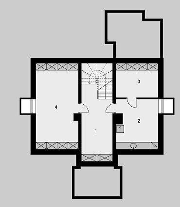 Dom jednorodzinny, parterowy, z poddaszem uźytkowym, podpiwniczony.