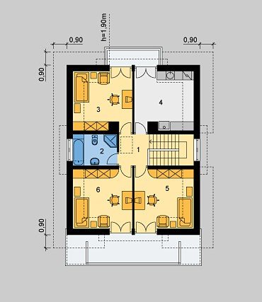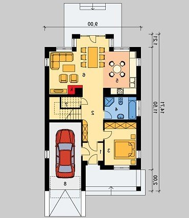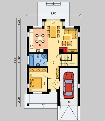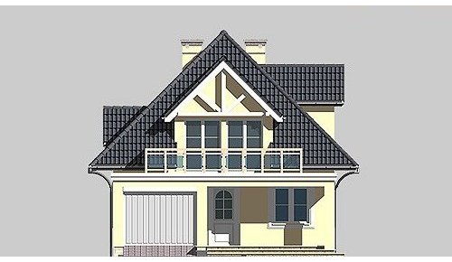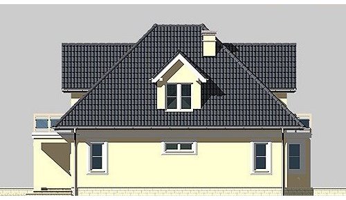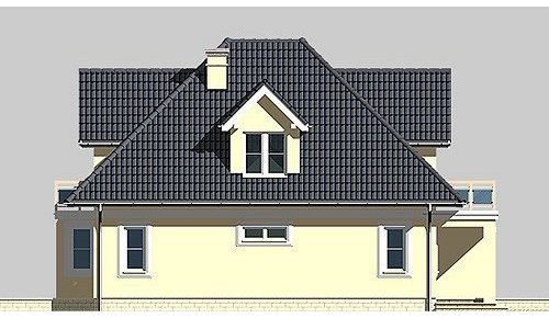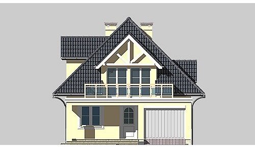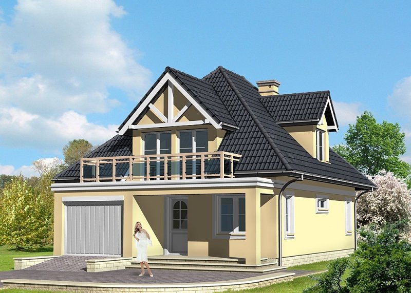 Dom jednorodzinny, parterowy, z poddaszem użytkowym i jednostanowiskowym garażem.