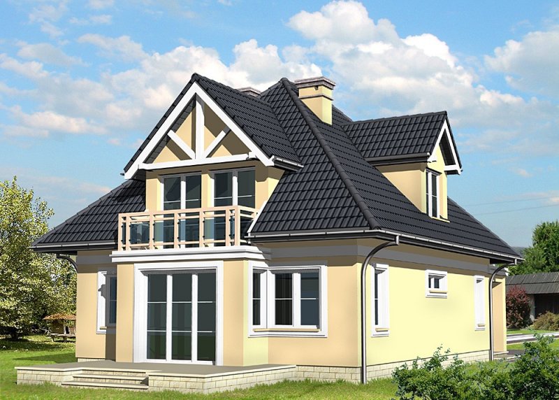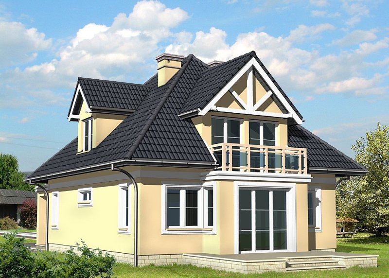 - Elewacje: wykończone tynkiem mineralnym na siatce z włókna szklanego, cokoły obłożone kamieniem naturalnym ciętym